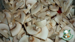 • Шампиньоны разрезаем напополам и нарезаем полукольцами (или полосками).
