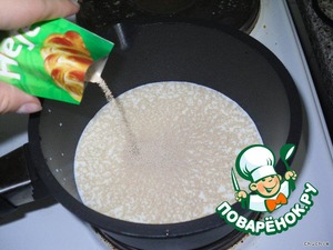 В моём слу4ае 500мл молока на 1 па4ку пудинга. От молока 6 ст. ложек взять и растворить в нём пудинг и сахар, остальное довести до кипения, добавить молоко с пудингом, мешать до загустения.