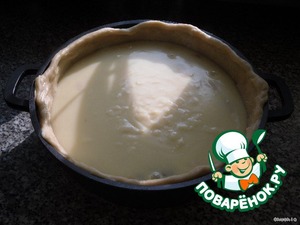 • Раскатать оставшуюся часть теста тонким слоем и накрыть сверху пудинг. Края защипнуть.