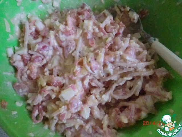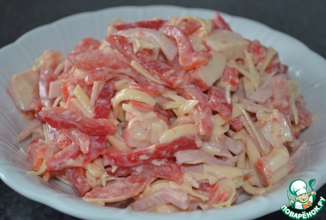 Рецепт «Салат с ветчиной и крабовым мясом»: