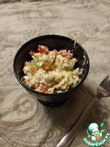 Сделаем розы из капусты и морковки (у меня была 1 вареная, режем, как будто дрожащей рукой, и тут же сворачиваем, представляя розочку).