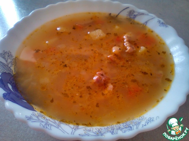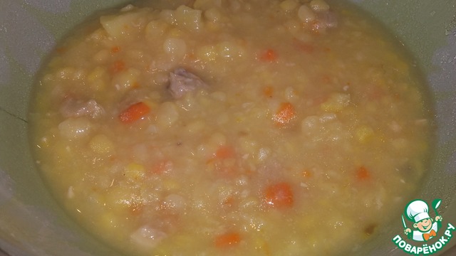 Горох не отделяла от жидкости,остальное все по рецепту.Красивый и вкусный суп!