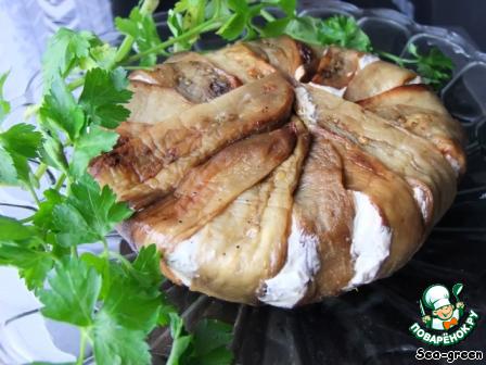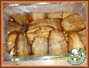 Прикрыть свисающими ломтиками баклажанов,