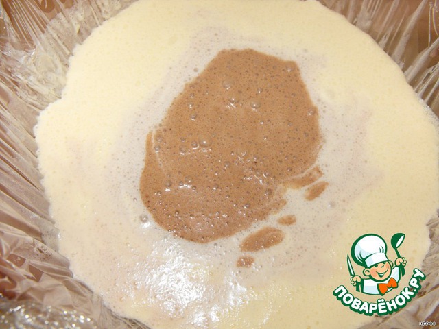 В оставшуюся треть добавить какао и хорошо взбить.