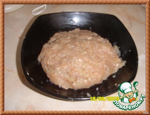 Приготовить фрикадельки. 3 кусочка хлеба замочить в молоке, отжать и добавить в фарш. Вбить 1 яйцо, 1 измельченный лук, чеснок, хорошо вымешать. посолить и поперчить по вкусу.