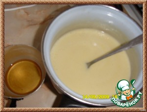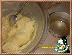 [b]Крем " шарлотт".[/b] 2 желтка + 1/2 стакана молока + 1/2 стакана сахара смешать. Сварить льезон : на небольшом огне, постоянно мешая,