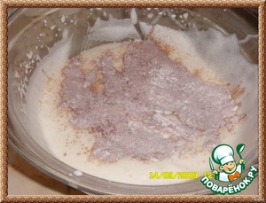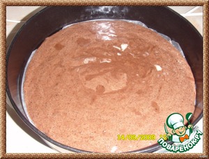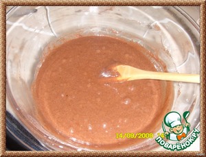 Муку с какао смешать и просеять.Аккуратно просеивая муку на яичную смесь, вмешать муку методом складывания.