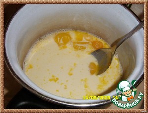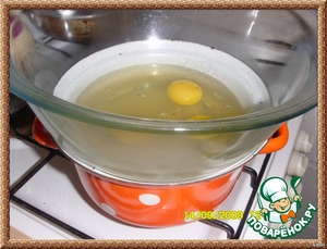 Снять яйца с водяной бани, добавить сахар и взбивать до тех пор, пока они полностью не остынут.
