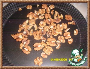 Орехи-без масла предварительно прокалить в духовке,очистить от кожуры и нарезать.