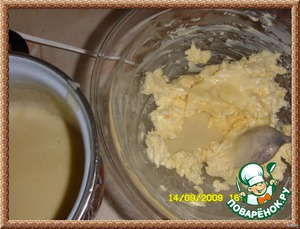 Смешать масло с льезоном: добавлять в масло льезон по чайной ложечке и мешать, пока крем не станет однородным. Не пользоваться миксером! Только вручную. -