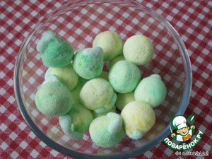 Делаю из них шарики, потом их сплющиваю и на лепёшку кладу мармеладинку. -