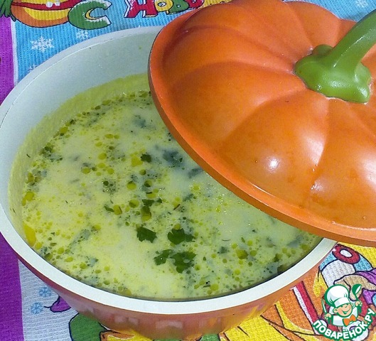 5. Получившееся пюре кладем в кастрюлю, добавляем горячее молоко и доводим до кипения. Готовый суп приправьте молотым красным перцем и карри.