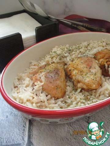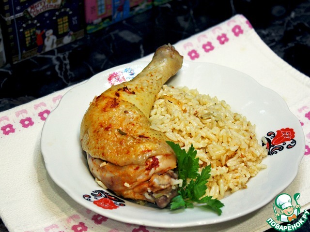 Хочу поделиться своим рецептом приготовления курицы. Это мое изобретение, нигде не подсмотренное. Курочка получается нежная, а рис пропитывается куриным соком и никаких дополнительных жиров.