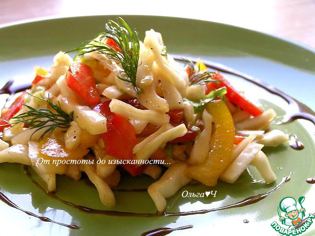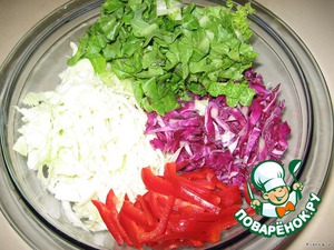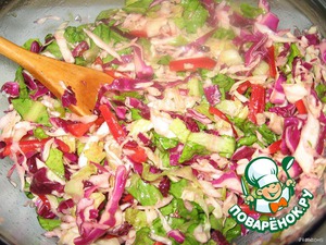 Вкусный и полезный салат! Краснокочанной капусты, к сожалению, не было, добавила перец разных цветов, а в заправку еще и соевый соус. Спасибо большое за рецепт!