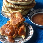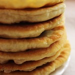 Каждую готовую лепёшку я посыпала чуть-чуть крупной солью.