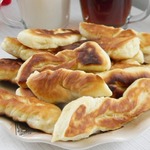 Делим тесто на небольшие кусочки, раскатываем лепёшки и протыкаем их вилкой.