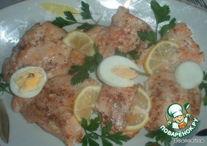 Обжарить филе с двух сторон до золотистой корочки. Я после этого еще поставила в микроволновку на 5 минут (чтоб уже наверняка было готово).