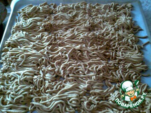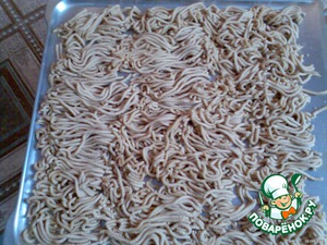 Затем пропустить тесто через мясорубку, выкладывая его на смазанный противень.