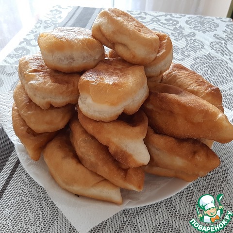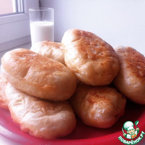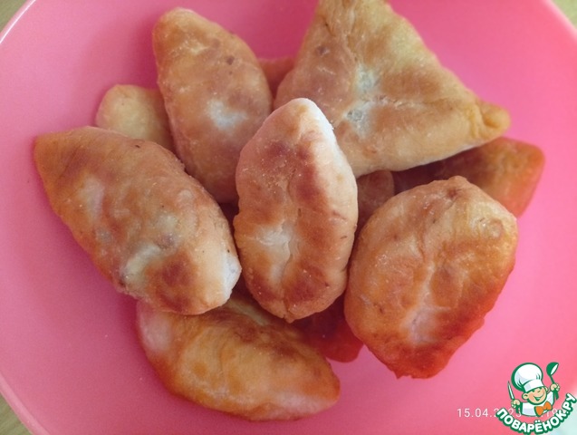 Жарить на растительном масле с обеих сторон. Я наливаю масла в сковороду 0.5литра. Пирожки практически плавают в масле.