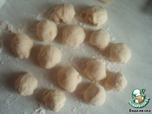 Дальше вынимаем тесто на стол, обмять его и сформировать из него небольшие булочки (размер и количество значения не имеют).