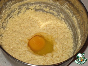 Затем в эту массу разбить яйцо и опять взбить миксером около минуты.