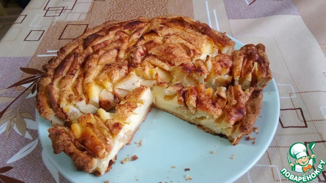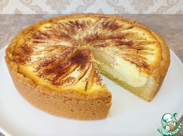 Очень вкусный, сочный пирог, с нежной творожной начинкой и легкой кислинкой от яблок. Готовить очень легко, самое долгое – почистить и нарезать дольками яблоки…