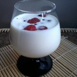Выливаем кефир с фруктами в емкость и ставим в холодильник.