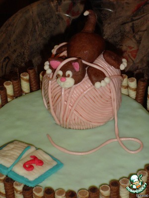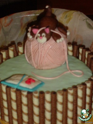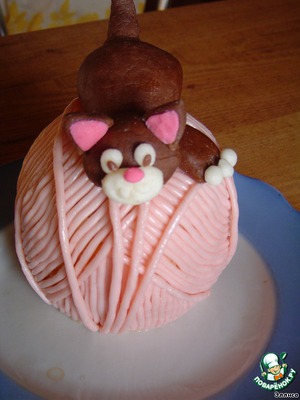 • На клубок усаживаем ранее изготовленного котика.
