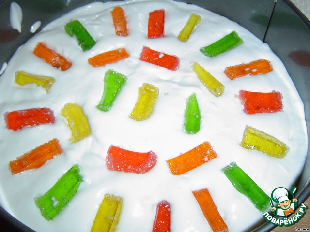 • Нарезаем небольшими кусочками мармелад и кладем его на суфле.