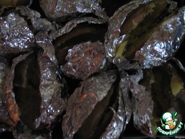 Картошку помыть, вытереть и завернуть в фольгу (чистить не надо).