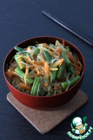 Я очень люблю рисовую лапшу. Поэтому нашла рецепт салатика в недрах инета, немного переделала под свой вкус и вот что у меня вышло...