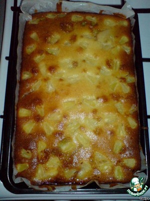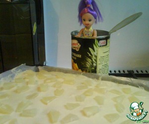 Залить тестом, сверху выложить кусочки ананаса.
