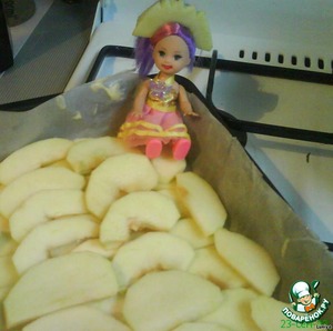 Выложить кусочки яблок.