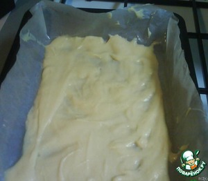 Форму застелить пергаментом, смазать маслом и налить не много теста.