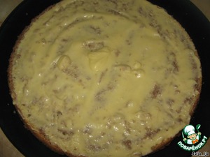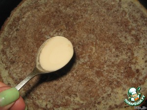 Корж пропитываем ликёром. Если торт будут кушать детки, пропитать лучше крепким сладким чаем.