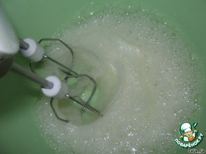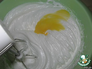 Для теста отделяем белки от желтков. Взбиваем белки с щепоткой соли и сахаром в устойчивую пену.