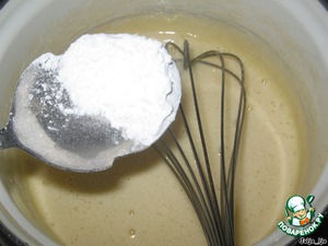 Добавляем крахмал и варим на водяной бане, постоянно помешивая, до загустения.