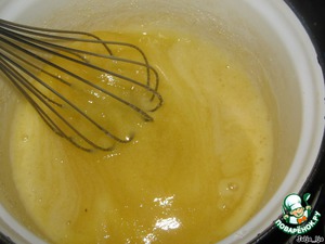 Для крема, смешиваем яйца и сахар. Взбивать не нужно, просто смешать.