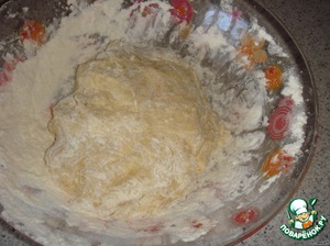 Добавить муку и замесить тесто. Тесто не должно быть слишком крутым.