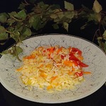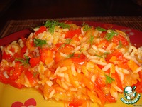 Добавить перец, нарезанный тонкой соломкой. Перемешать.
