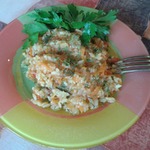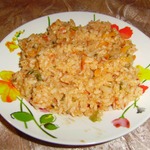 Потом добавить 1/2 стакана воды и рис. Тушить ещё 20 минут. -