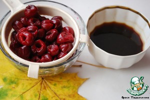 Вишню откинуть на сито, сок собрать.