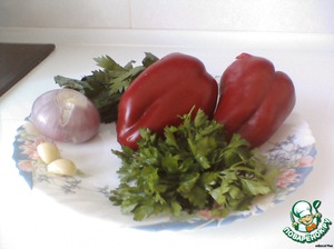 Пока варятся сининькие, нарезаем перец соломкой, лук полукольцами, измельчаем зелень.