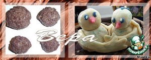 Раскатать и обернуть шарики из бисквита. Сделать глазки, клювики и крылья. -