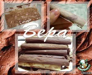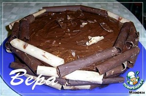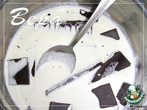 В сливки добавить 200 г. черного шоколада, довести до кипения.
