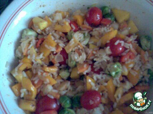 Перемешиваем овощи с рисом,смешанным с обжаренным луком и морковкой.