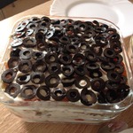 Маслинки режем кружочками. Достаточно одной маленькой баночки.