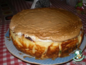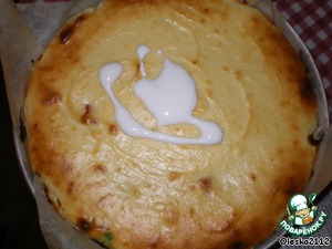 Через 15 минут, от начала выпечки,вынимаем форму с коржом из духовки.Поверх выкладываем творожную начинку.И вновь ставим в духовку минут на 30 при температуре 180*С.