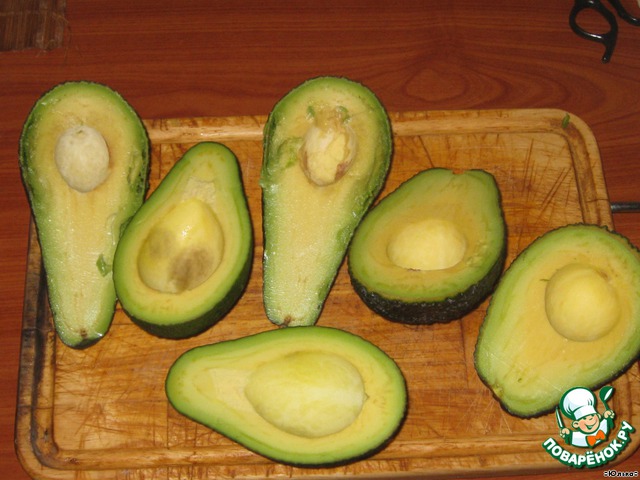Авокадо очищяем от кожуры и освобождаем от кости.