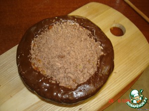 В тортике выбираем серединку и присыпаем тертым шоколадом.